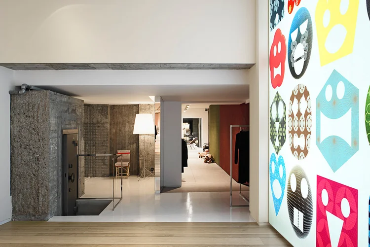 Kinky Atoms have featured in press, on billboards, in a short film, on the website, decorating a range of the stores carrier bags, three ranges of motorcycle helmets, a detergent and fabric conditioner/perfume for clothes project, a charity UNICEF toothpaste project, and a clothing and swimwear collaboration with Monocle magazine.